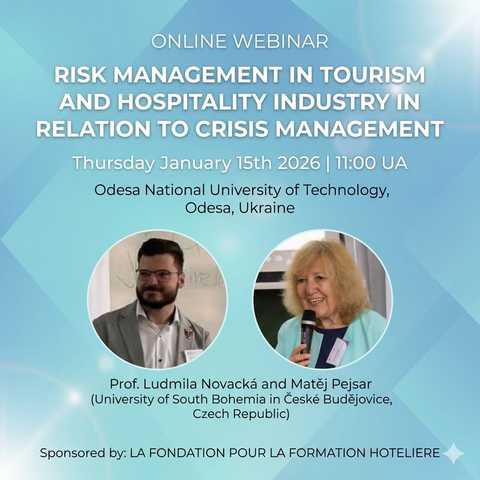 «Risk Management in Tourism and Hospitality Industry in Relation to Crisis Management», який відбудеться 15 січня 2026 року онлайн через Zoom.