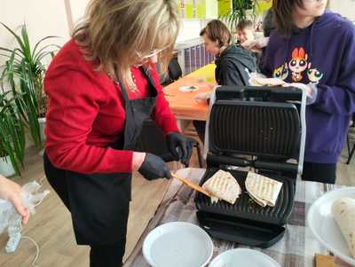 Учні опанували технологію приготування сендвіч-ролів на основі тортильї, експериментували з різноманітними начинками й дізналися про принципи поєднання інгредієнтів. Атмосфера заходу була динамічною та творчою: школярі не лише отримали нові кулінарні навички, а й спробували себе в ролі майбутніх фахівців ресторанної справи.